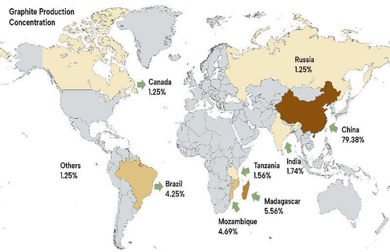 Academics increasingly describe Li-on batteries as geopolitical. Firstly, battery raw materials such as lithium and graphite are unevenly distributed (Figure. 2,3). Second, the battery supply chain is a highly globalized and fragmented process involving extraction, refining, manufacturing, and recycling across different geographies.