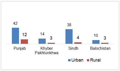 Punjab allocates the largest police budget (Figure 2) and operates 720 police stations covering 53% of Pakistan’s population. Despite a police-to-population ratio of 1:583 and the lowest per capita spending, Punjab achieved a conviction rate of 38% in 2024, with 96,962 convictions out of 256,210 resolved cases.