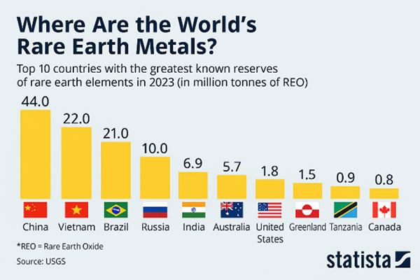 Source: Statista, Countries with the Greatest Known Reserves of Rare Earths