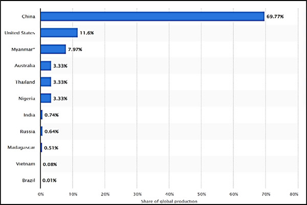Source: Statista, Mining of Rare Earths by Country