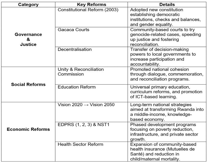 Rwanda’s reform trajectory has since progressed in structured phases. Some of the significant reforms are summarised below.