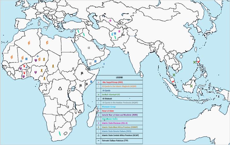 Figure 3: Spread of Terrorist Organisations across Africa and Asia
