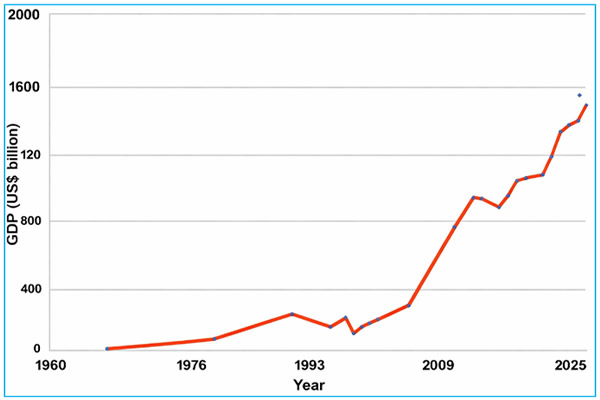 Indonesia ranks as the world’s sixth-largest economy, and its GDP has expanded from US$5.7 billion (1967) to US$1.5 trillion (2025), maintaining an average annual growth rate of 5-6%.