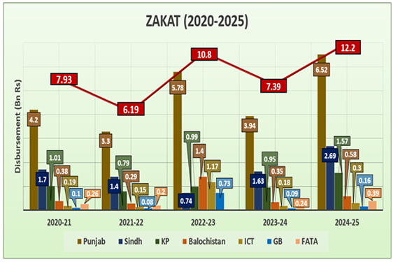 The Zakat System remains an essential mechanism for equitable wealth redistribution and poverty prevention. Figure 3 shows an overall upward trajectory of disbursements with periodic fluctuations across provinces.