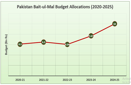 Pakistan Bait-ul-Mal (PBM) assists vulnerable groups, including widows, orphans, persons with disabilities, and the poor, by providing food, clothing, education, and health care.