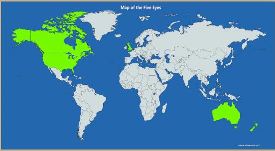 Map of Five Eyes Alliance States