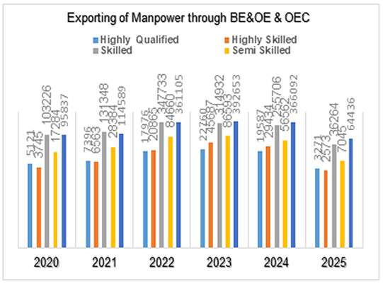 Based on these Classifications, the following graph shows the export of manpower over the last 05 years.