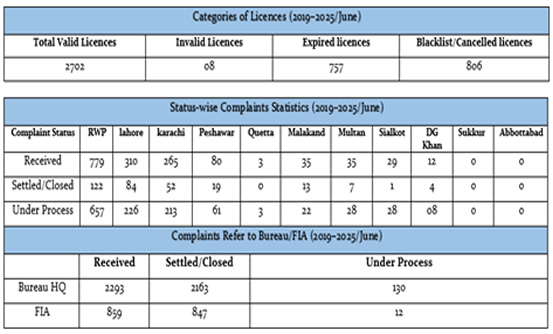 The data reflect the persistent regulatory weaknesses in overseeing OEPs. Although a large number of licences remain active, a considerable share has either lapsed, been blacklisted due to serious violations. On the complaint front, the figures reveal alarming inefficiencies; a substantial backlog of unresolved or pending cases, many of which have escalated to higher authorities or entered legal proceedings. This pattern highlights the critical gaps in enforcement, accountability, and institutional responsiveness.