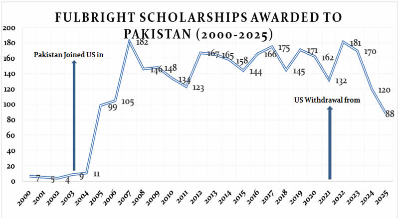 Graph 4 below illustrates the expansion of the Fulbright program in Pakistan, particularly after 9/11.