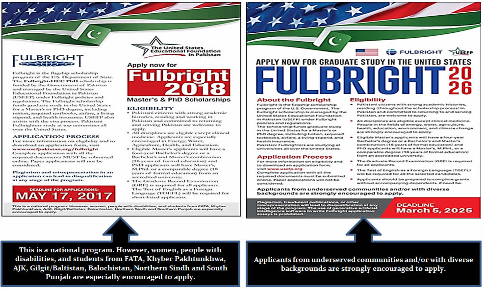 The United States Educational Foundation in Pakistan (USEFP) primarily manages Fulbright selection in Pakistan. USEFP advertisements on its website state that Pakistani citizens with strong academic histories, residing in Pakistan, and committed to returning and serving Pakistan are welcome to apply.