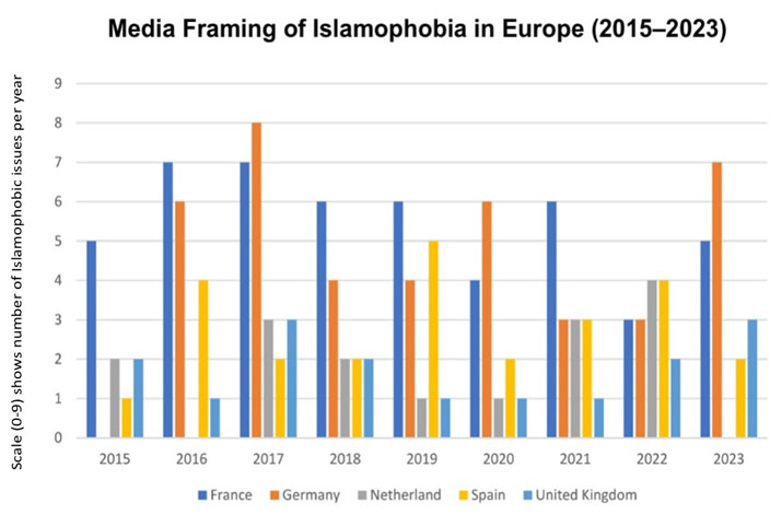 Figure 5: The graph shows media outlets across European states frame Islamophobia