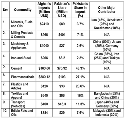 Table 1: Afghan Imports from Pakistan and Their Share in Total Percentage in Imports in 2024