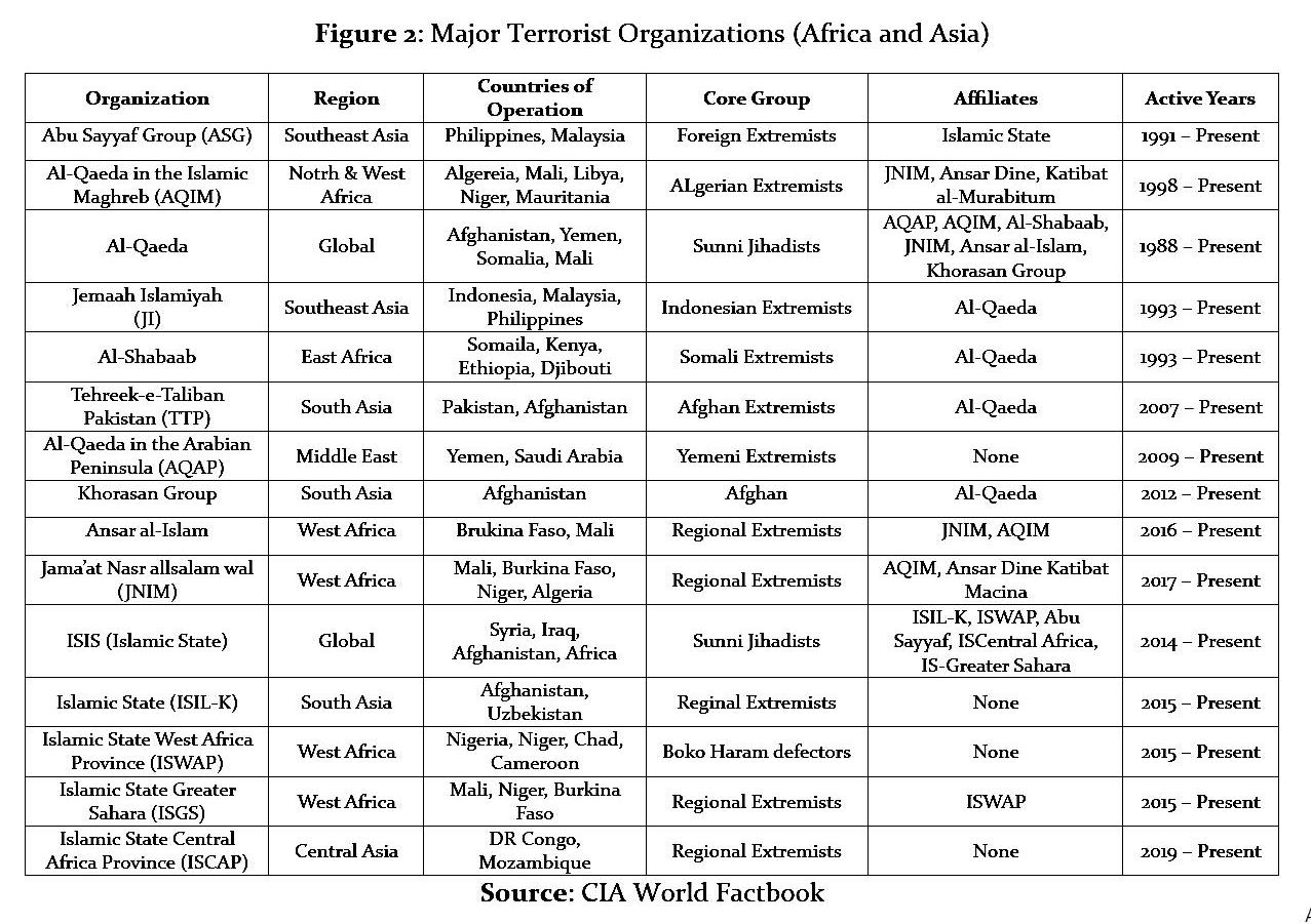 Figure 3: Spread of Terrorist Organisations across Africa and Asia