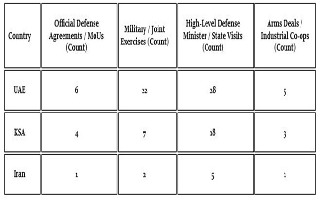 Table 1: India’s Defence Engagement with UAE, KSA, Iran from 2001 to 2026