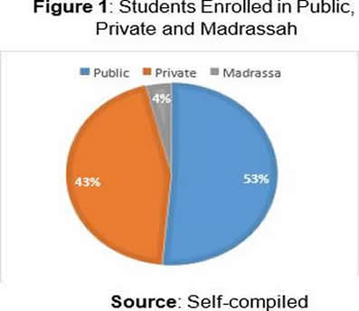 Pakistan’s education system consists of three streams: public, private, and madrassa. While private schools broadly educate 43% students, and 4% of the students are enrolled in madrassas, the public sector caters for the majority, with 53% students enrolled in 176,184 public schools across the country. Since almost 45% of the population lives below the poverty line, public schools remain the only affordable option for the majority of families, with school fees ranging from free to PKR 100.
