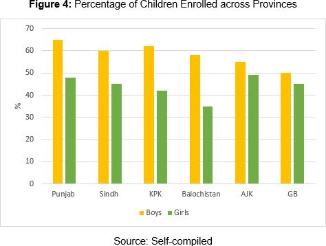 AJK and GB also have fewer public schools and a lower enrollment rate due to a smaller population and dispersed settlements across mountainous terrain.