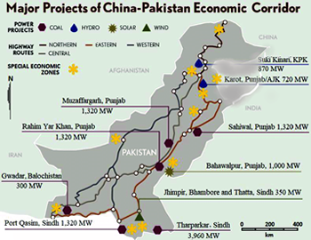 Under the CPEC projects, two projects are still in progress, while five more are being considered. The unfinished projects include Suki Kinari Hydropower Project (884 MW) and Coal-Fired Power Project at Gwadar (300 MW). Under-consideration projects include Kohala Hydropower Project (1124 MW), Azad Pattan Hydropower Project (700.7 MW), Thar Mine Mouth Oracle Power Plant and Surface Mine (1320 MW), Cacho Wind Power Project (50 MW) and Western Energy (Pvt.) Ltd. Wind Power Project (50 MW).