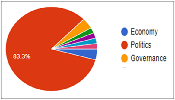 Moreover, private news channels broadcast many infotainment programmes, but those also mirror politics. The PEMRA framework lacks explicit definitions for this content category, resulting in a lack of regulation. Initial investigation revealed an overwhelming perception that 83.3% of the broadcast content revolves around politics, often accompanied by misinformation.