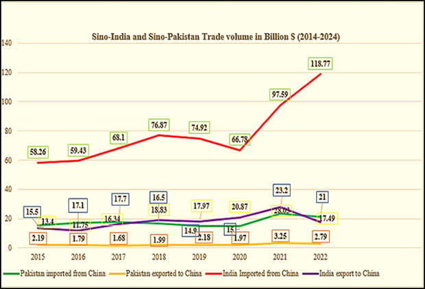 Over the past decade, the Sino-Indian relationship has been a complex interplay of cooperation and conflict. As the two world's most populous nations and fastest-growing economies, China and India have a significant role in the region. Their bilateral relations are marked by economic collaboration, geopolitical rivalry, and cultural exchanges. This insight provides a holistic analysis of their relationship over the past decade and lessons for Pakistan regarding its foreign policy.